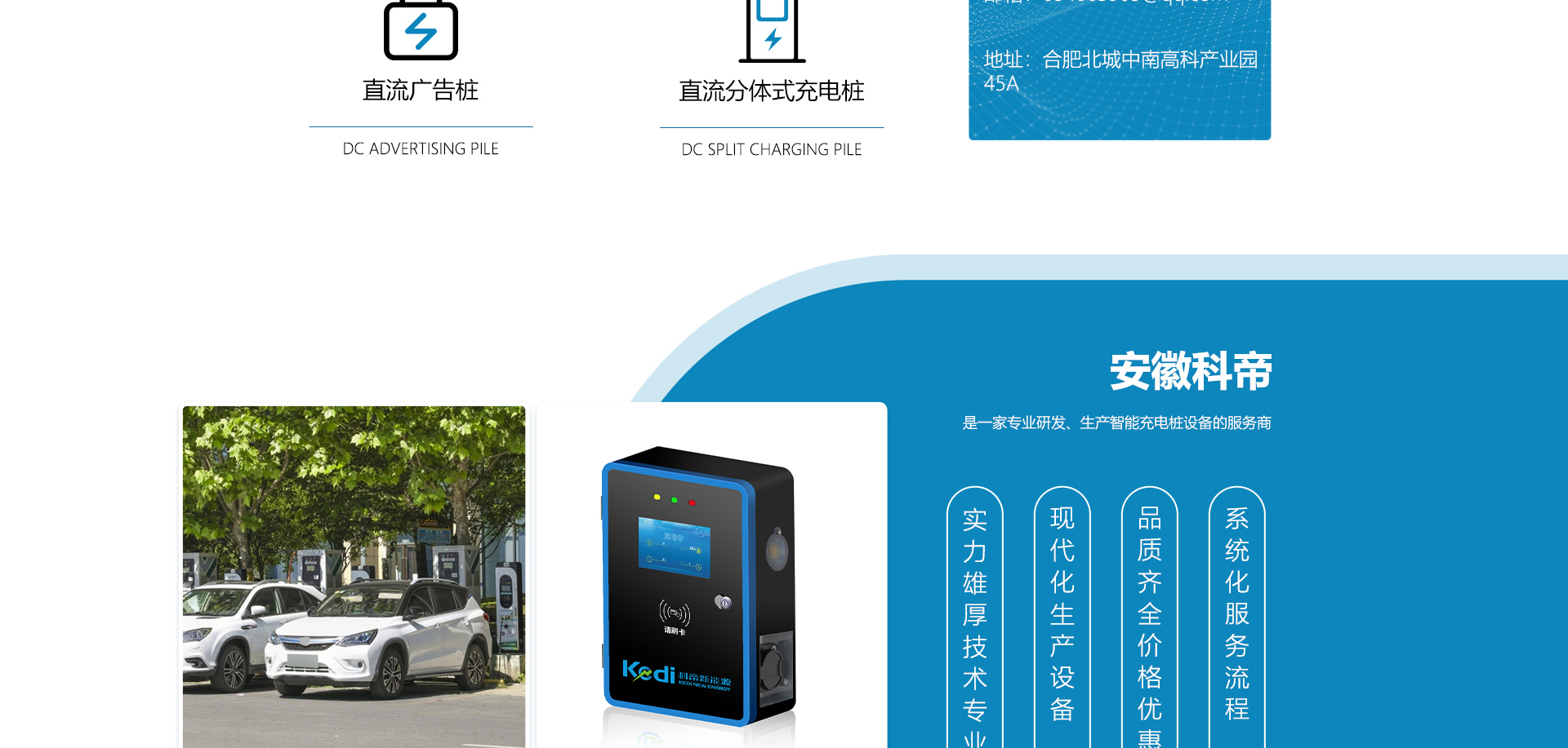 關(guān)于我們安徽科帝新能源科技有限公司坐落于安徽省會-合肥,是一家研發(fā)、生產(chǎn)智能充電樁設(shè)備,汽車充電站后臺監(jiān)控管理系統(tǒng)和生產(chǎn)高壓開關(guān)設(shè)備的企業(yè).由專門的研發(fā)團隊、管理團隊按照現(xiàn)代化企業(yè)制度規(guī)范設(shè)立的有限責(zé)任公司。致力于為能源智能、安全的應(yīng)用和節(jié)能減排提供整體的技術(shù)與產(chǎn)品解決方案。科帝集研發(fā)、設(shè)計、生產(chǎn)、銷售以及服務(wù)于一體,在電動汽車充電方案,充電設(shè)施建設(shè)和城市配電方面擁有廣泛的技術(shù)研究及經(jīng)驗積累,為客戶提供安全、智能的充電設(shè)備及充電運營站建設(shè)一體化解決方案。并堅持以人為本、質(zhì)量為先、顧客至上、不斷創(chuàng)新”的企業(yè)理念,為能源行業(yè)的發(fā)展、節(jié)能減排做出重大的貢獻。公司擁有豐富的產(chǎn)品種類,目前科帝已研發(fā)生產(chǎn)了三十多種產(chǎn)品,充電設(shè)備有直流一體式充電樁、直流分體式充電樁、直流廣告樁、交流廣告樁、廣告一體樁、壁掛交直流樁;等多種充電設(shè)備;每一款產(chǎn)品都是精心打造,力求為客戶提供優(yōu)越的用戶體驗。展望未來科帝將通過持續(xù)的自...